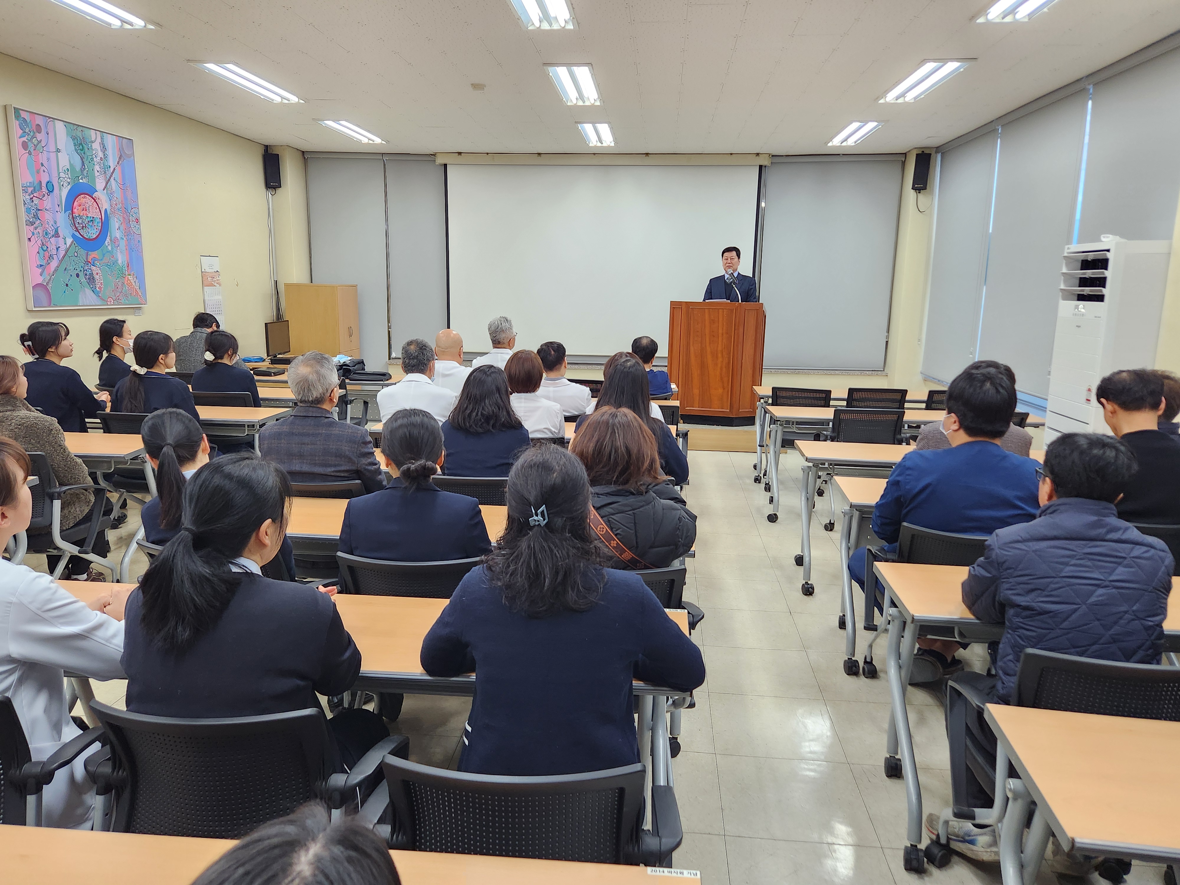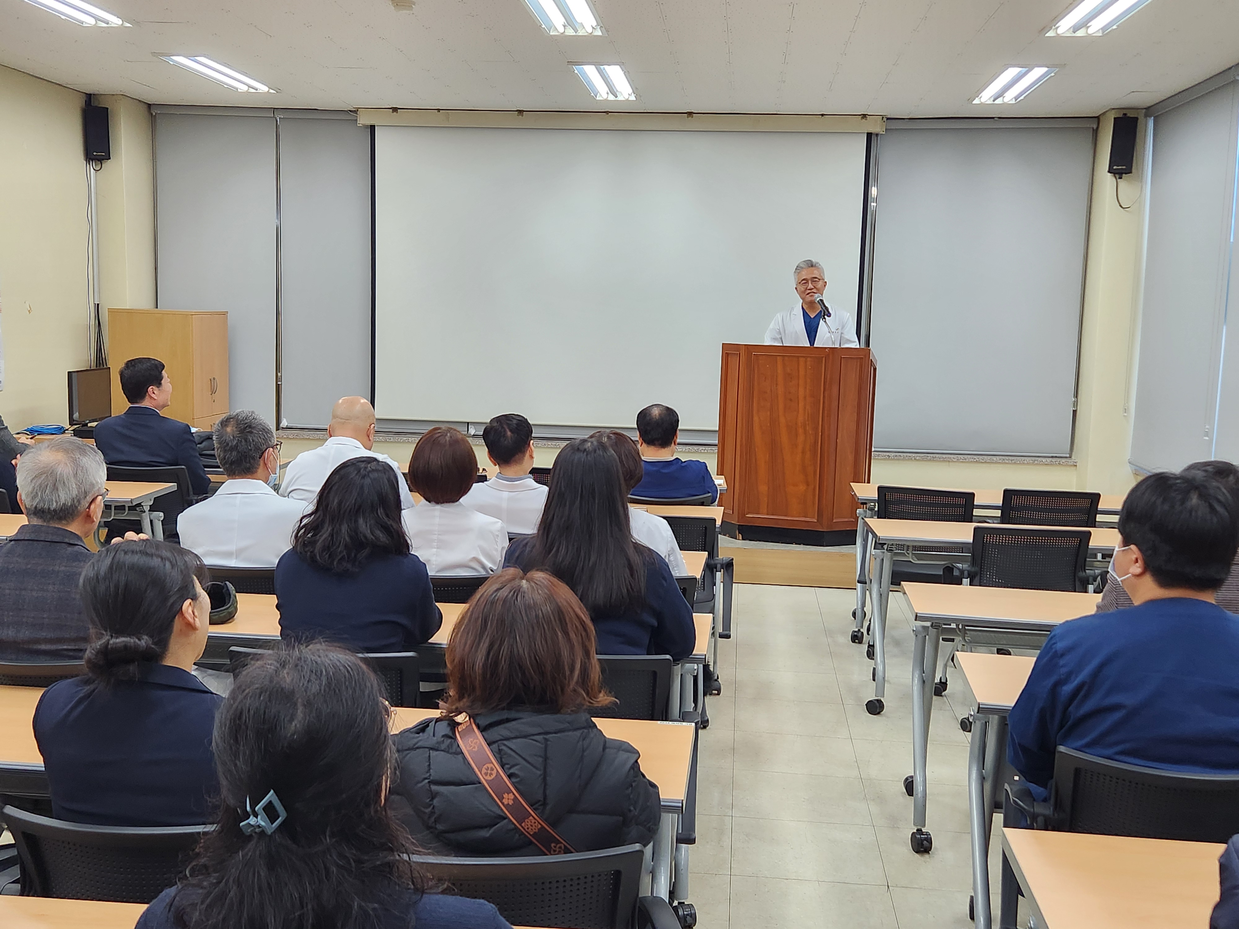 또한 겨울철 에너지 절약의 중요성을 언급하며, 난방 사용이 많은 시기인 만큼 불필요한 에너지 사용을 줄이는 작은 실천이 필요하다고 당부했다. 아울러 병원내 환경 개선을 위해 자체적으로 청소에 임해준 시설파트와 미화부 직원들의 노고에 감사를 전하며, 각자의 자리에서 주변 환경을 한번 더 살피는 직원이 됐으면 한다고 말했다.