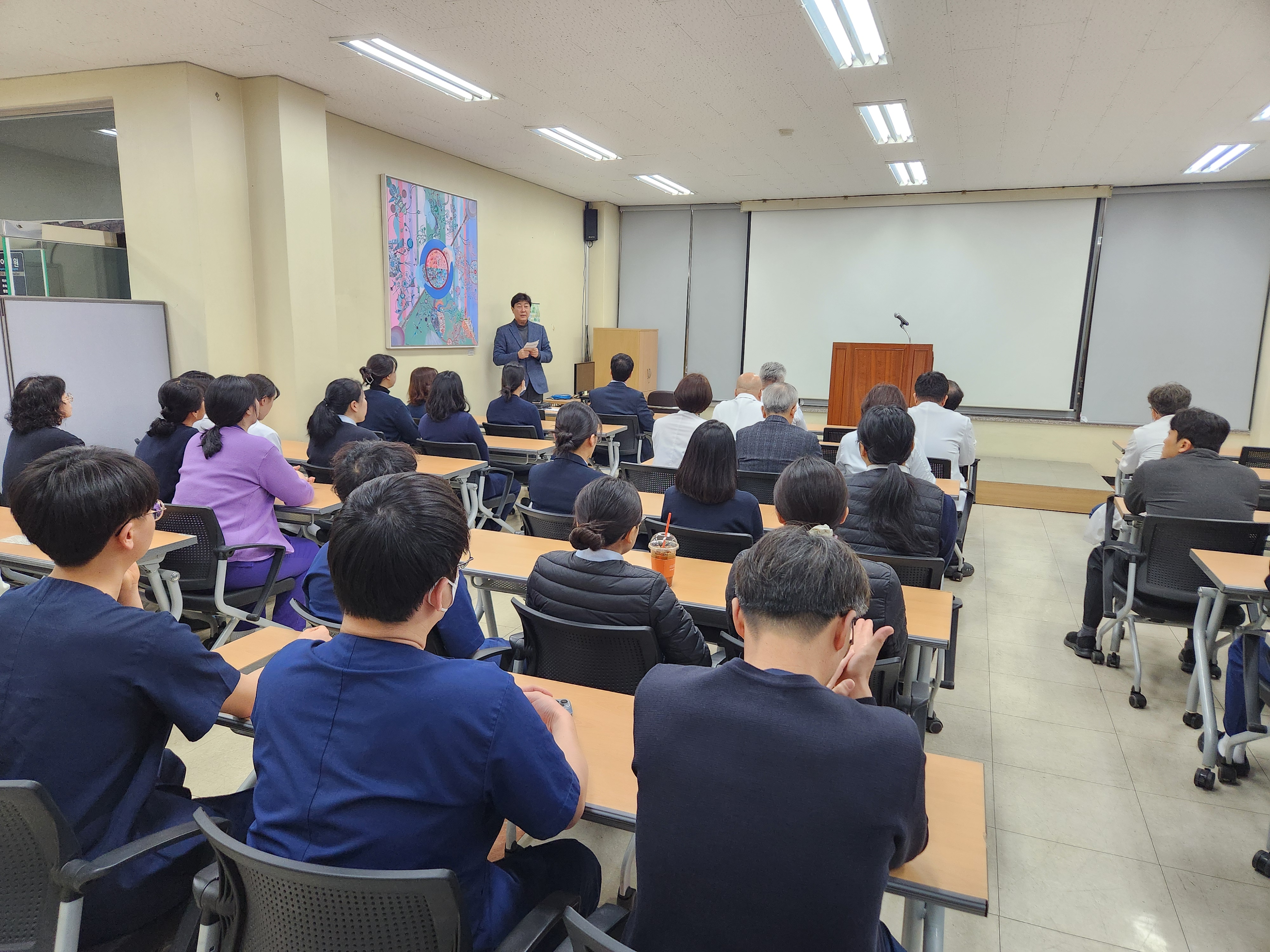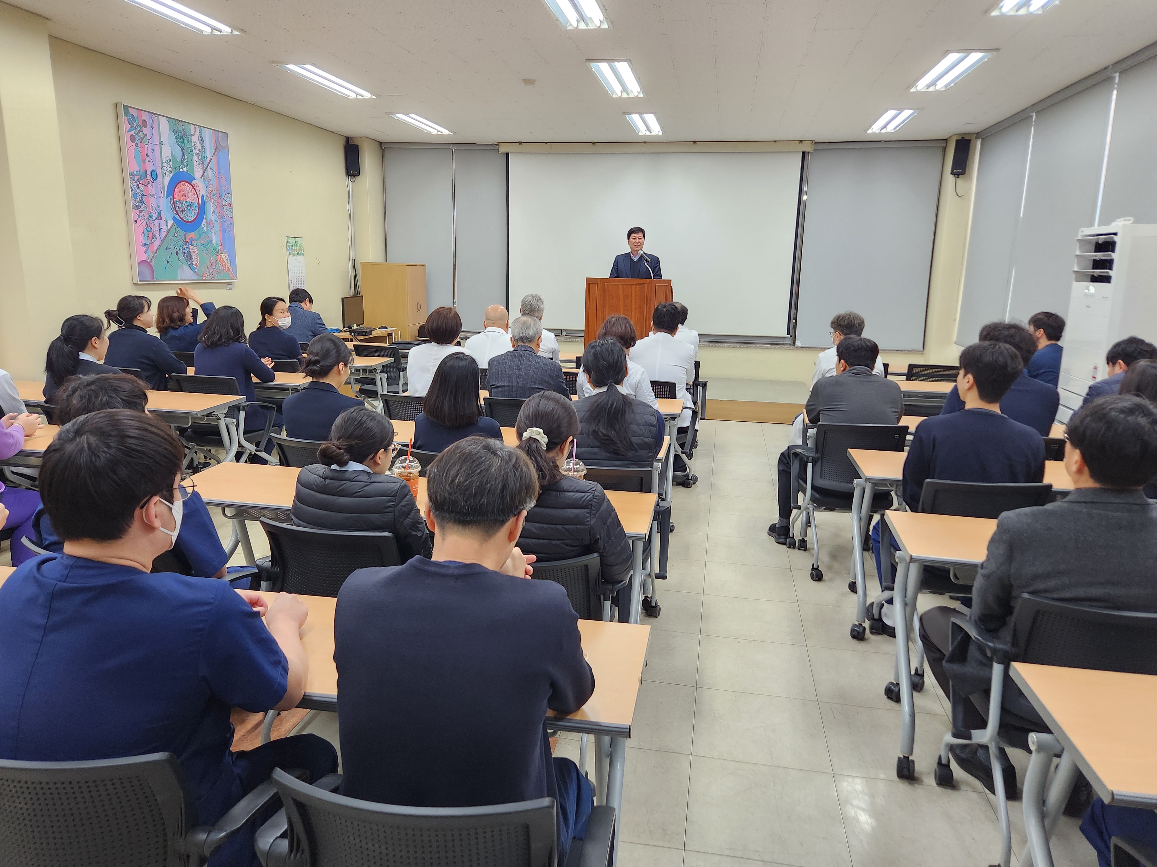 청아병원은 지난 2월 6일, 병원 별관 강당에서 임직원들이 참석한 가운데 2월 직원조례를 진행했다.