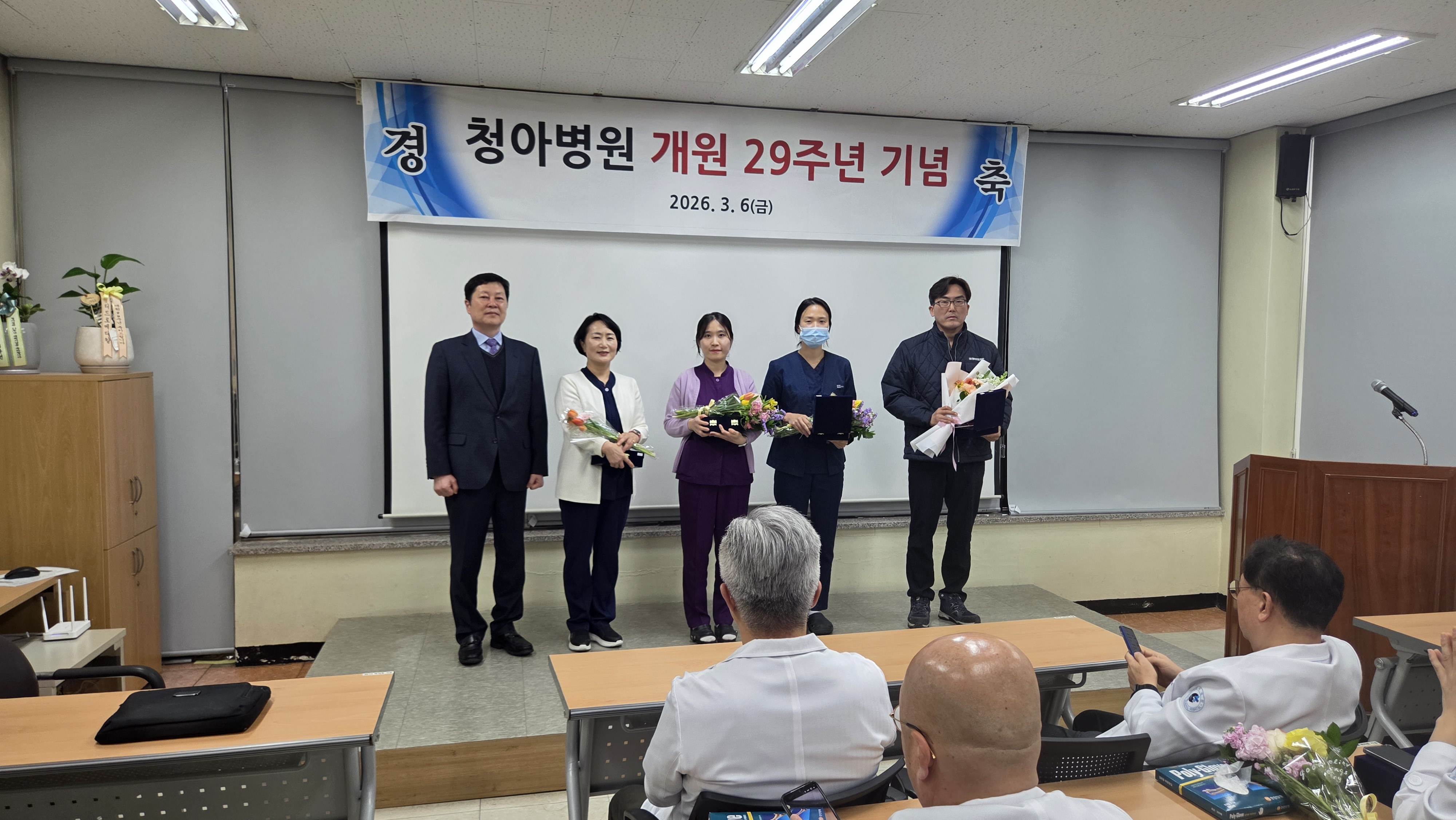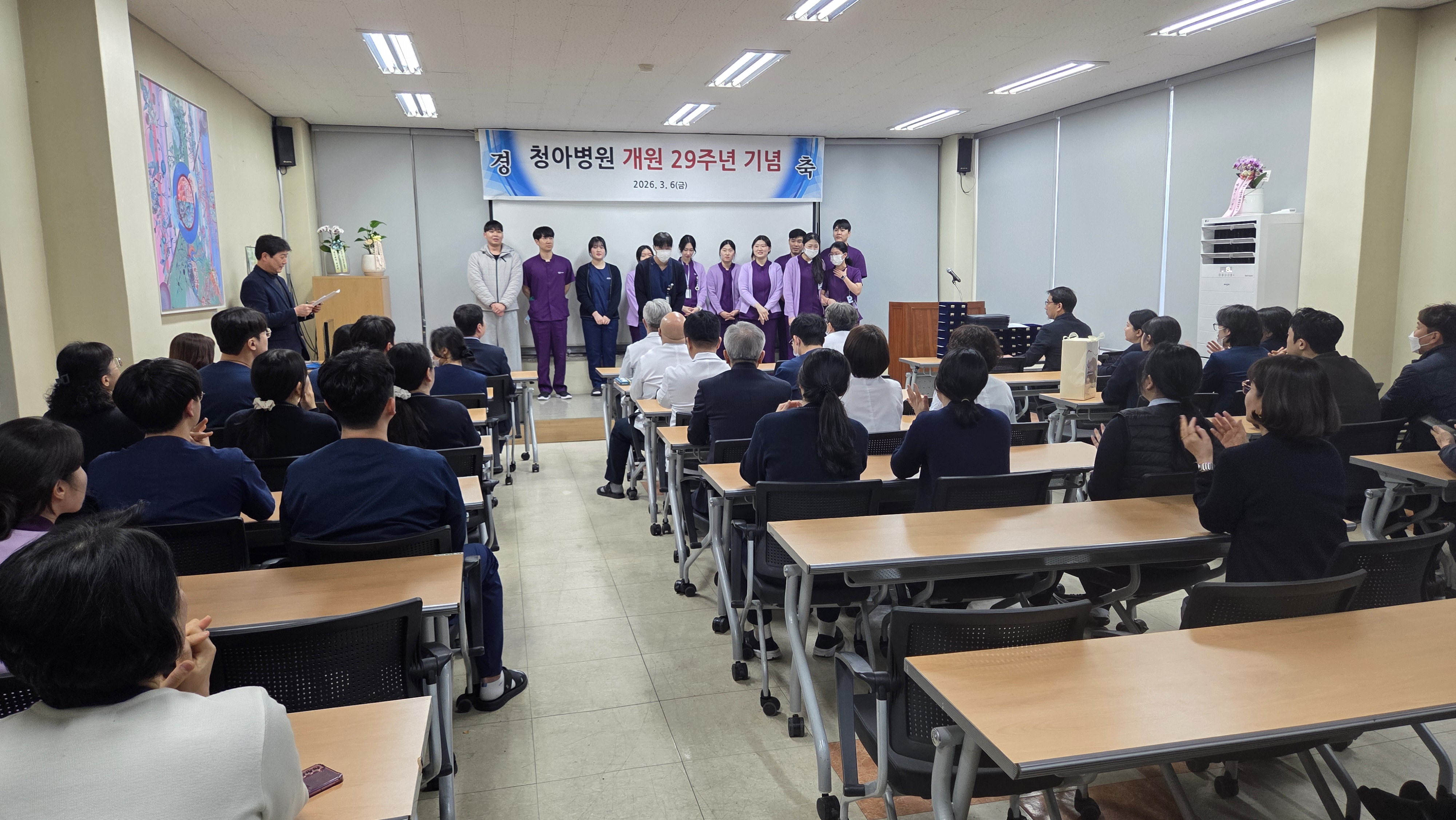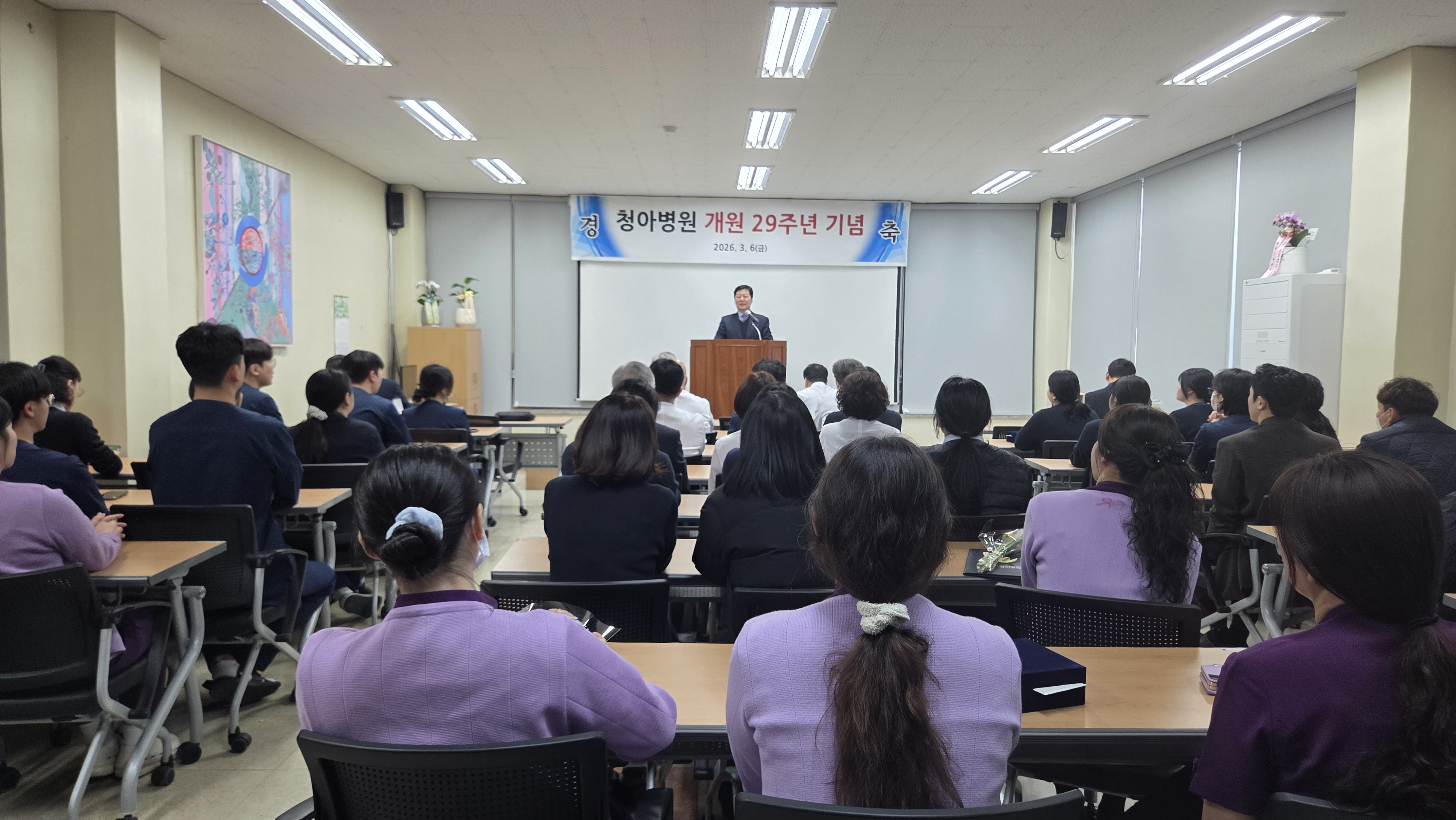 청아병원은 3월 6일, 오전 8시30분 병원 강당에서 임직원들이 참석한 가운데 개원 29주년을 맞아 기념식을 개최했다.