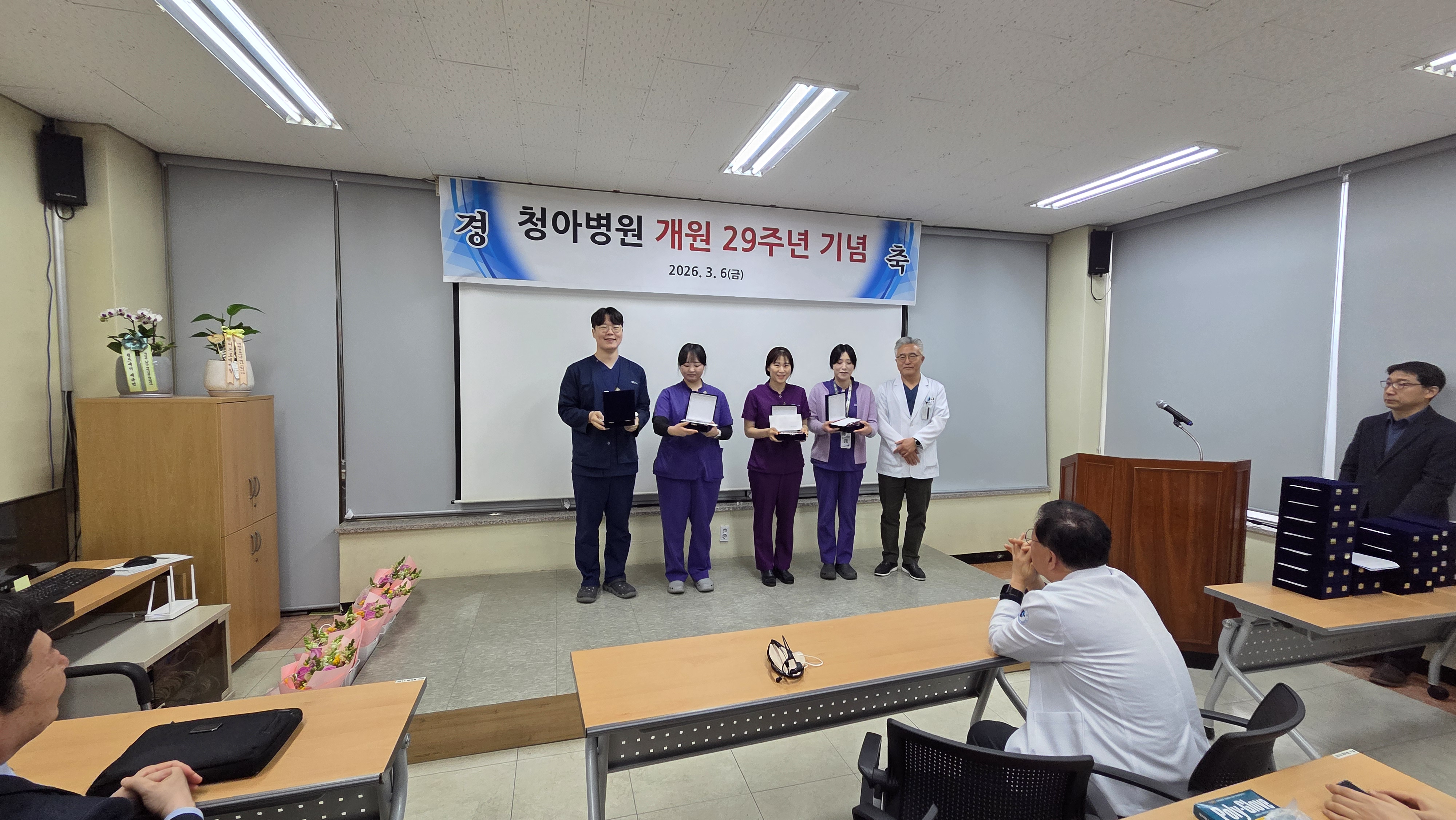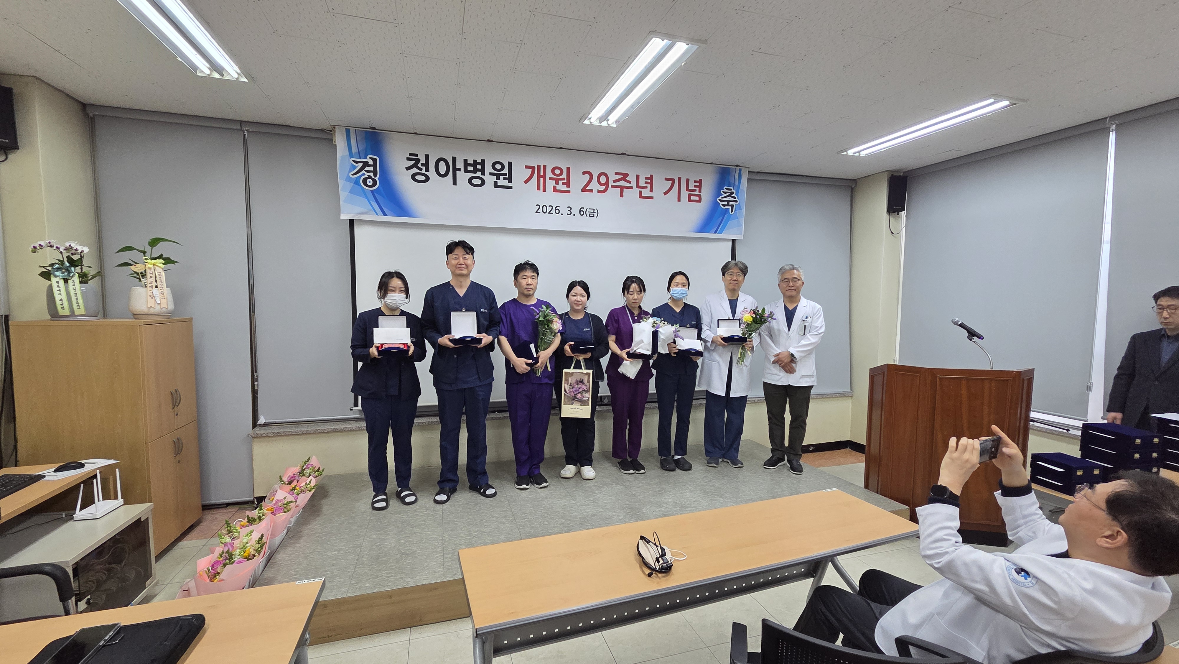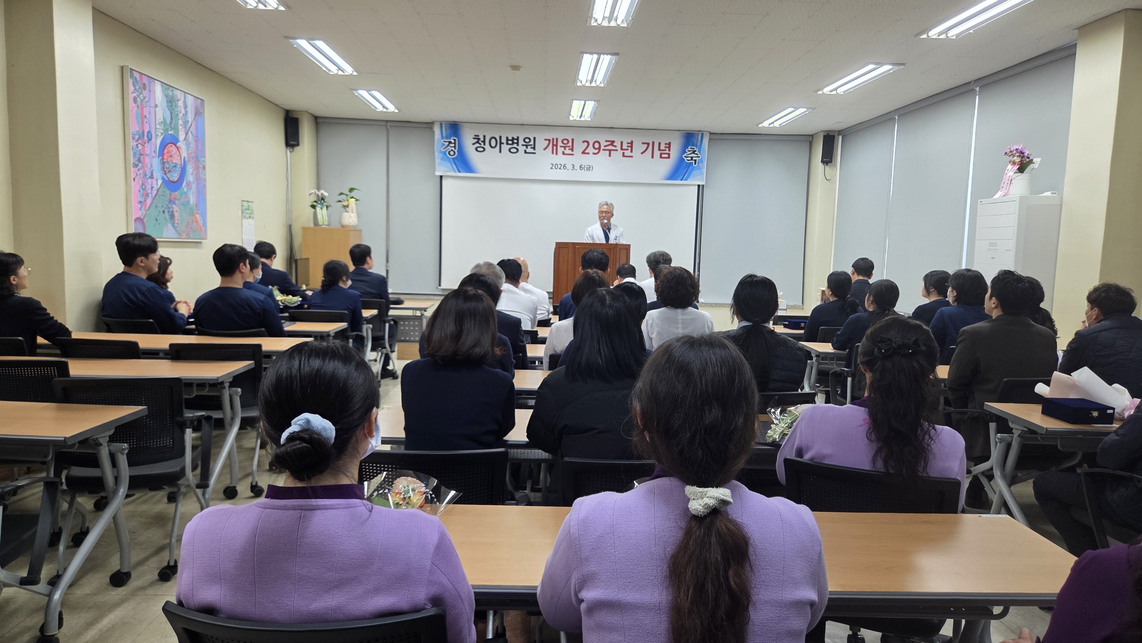 청아병원은 3월 6일, 오전 8시30분 병원 강당에서 임직원들이 참석한 가운데 개원 29주년을 맞아 기념식을 개최했다.